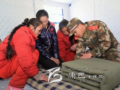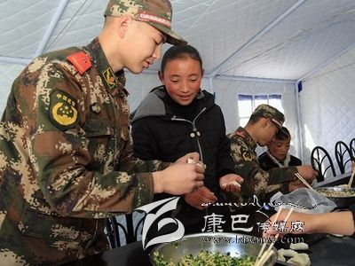12月7日,康定6.3級地震后的第二個周末,這對甘孜州西康福利學校的孩子們來說,是一個開心的日子。當天上午,武警甘孜州支隊抗震救災一線官兵來到學校,與在這里生活學習的孤兒和特困生一起包餃子,度過了一個溫暖的周末。12歲的措姆性格靦腆,她把餃子皮攤在手心,一旁的戰士王兵舀了一勺餡放在餃子皮中央,可措姆怎么也沒法把餃子包得像模像樣。在王兵的輔導下,措姆很快學會包了一個漂亮的餃子。在學包餃子過程中,五六十雙手就包出五六十種餃子,看著自己的勞動成果,孩子們特別開心。吃過午飯,武警官兵們還精心安排了疊被子活動,在帳篷內教孩子們怎么疊軍被。大家一起動手,你教我疊,熱鬧極了。(宋科霖 /文 郝勇 /攝)