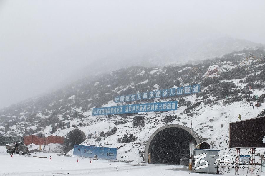 由于冬季天氣寒冷,雀兒山隧道口被白雪覆蓋。 新華社發