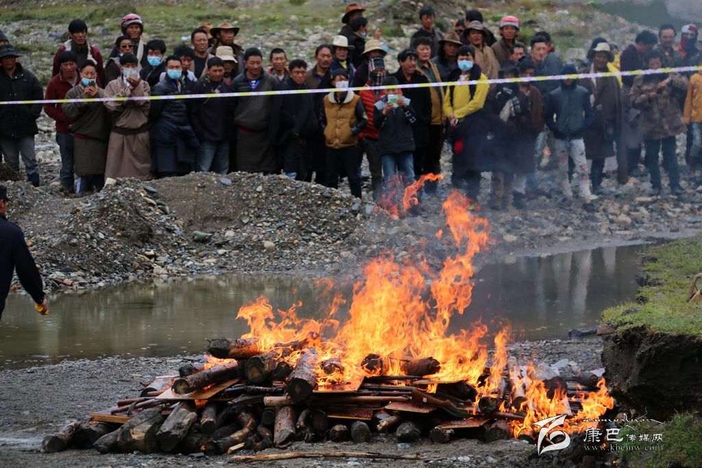 經過3個多小時在康定情歌廣場集中展示后,為徹底消毀這批非法槍爆物品,州公安局與相關部門一同,驅車將這批非法槍爆物品運往本市塔公鄉,在300多名農牧民群眾的目睹下,熊熊燃燒的火焰,將這批非法槍爆物品徹底根除。