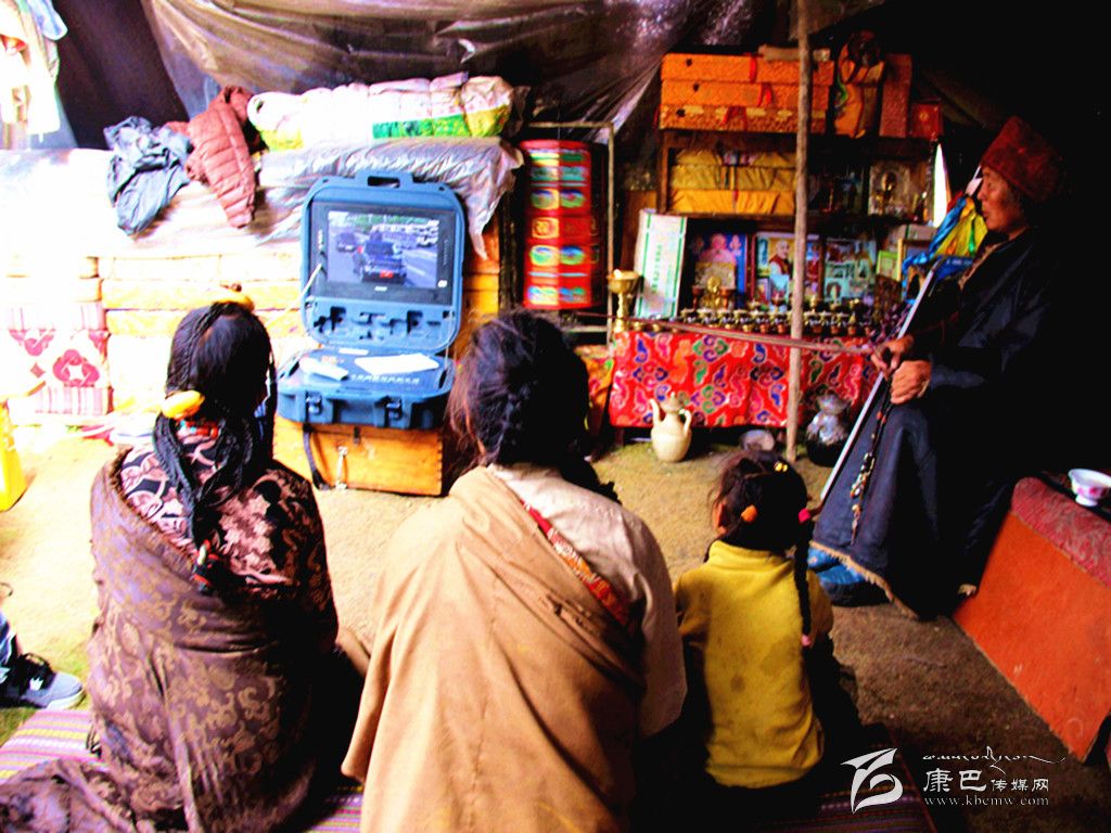 蒙宜鄉幸福三村牧民根秋澤讓帶著兩個小女兒打水、燒茶、將牦牛放去指定草場、擠奶后,根秋澤讓一家生怕錯過了收看閱兵儀式。他迅速安裝好了“馬背電視”找準太陽的角度架好“太陽板”,仔細調試衛星接收器,使馬背電視的收視效果達到最佳。