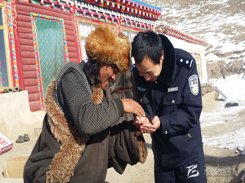 一月的扎溪卡草原大雪飄飄,氣溫降到了零下,州公安局結(jié)對(duì)認(rèn)親小分隊(duì)的民警們不顧嚴(yán)寒,在春節(jié)和藏歷新年即將來臨之際,帶著黨委政府的問候、帶著州公安局黨委和全局民警職工的一片心意,驅(qū)車千里,來到被譽(yù)為生命禁區(qū)的石渠縣格孟鄉(xiāng)走訪慰問,小分隊(duì)的民警們遠(yuǎn)遠(yuǎn)地就看見“親戚”們排著長隊(duì),拿著哈達(dá)在風(fēng)雪中等候,當(dāng)小分隊(duì)民警來到他們面前時(shí),老村支書拉著小分隊(duì)民警的手激動(dòng)地說:“快過春節(jié)了,天這么冷,還下著雪,路又那么遠(yuǎn),你們還要來看我們,還帶來那么多慰問品,太感謝了!感謝黨!感謝政府!感謝州公安局!還有我們的公安民警。”