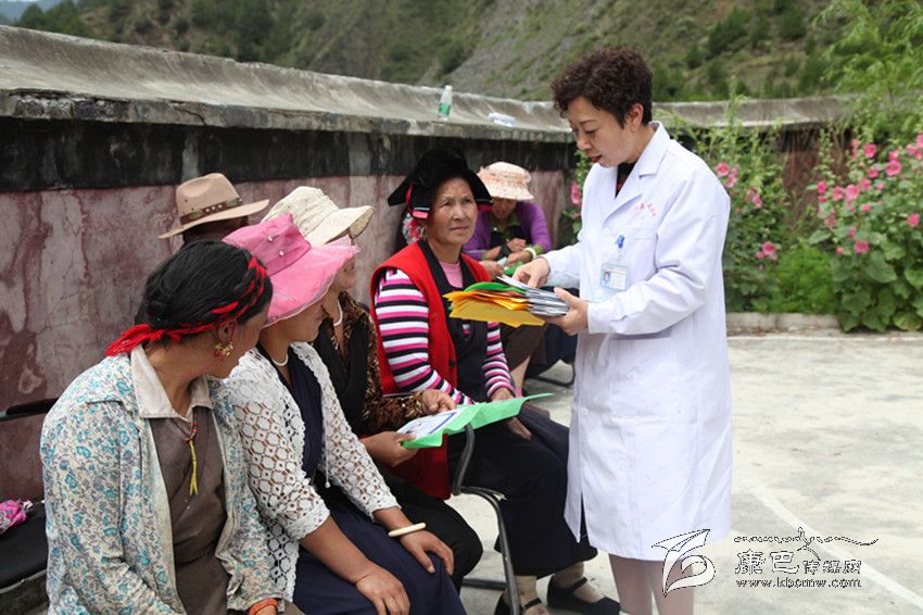雅江縣醫務工作者向群眾發放包蟲病防治宣傳資料。