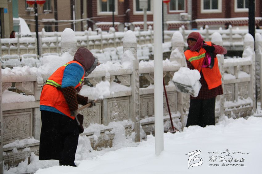 環衛人員正在清理積雪。