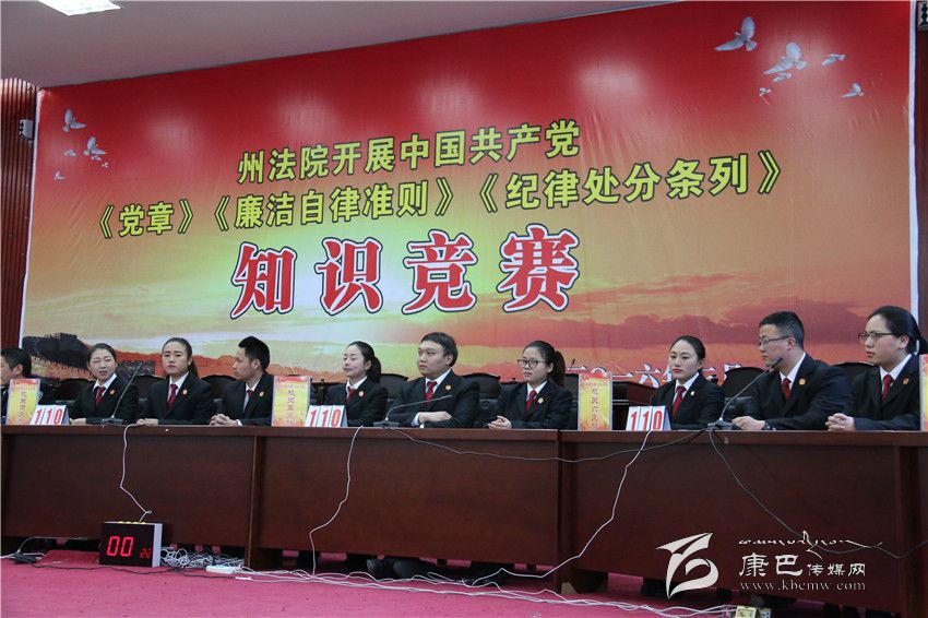 本次知識競賽以《黨章》、《廉潔自律準 則》、《紀律處分條例》的相關規定和黨政法規知識為主,采取必答、搶答、觀眾互動等形式進行,旨在筑牢法院機關黨員干部反腐倡廉的思想道德防線。經過激烈的角逐,法院機關第三支隊獲得第一名。