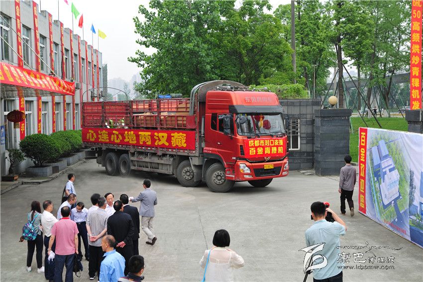 成都市委常委謝瑞武宣布50套全自動高頻青稞烘炒機啟運甘孜州。