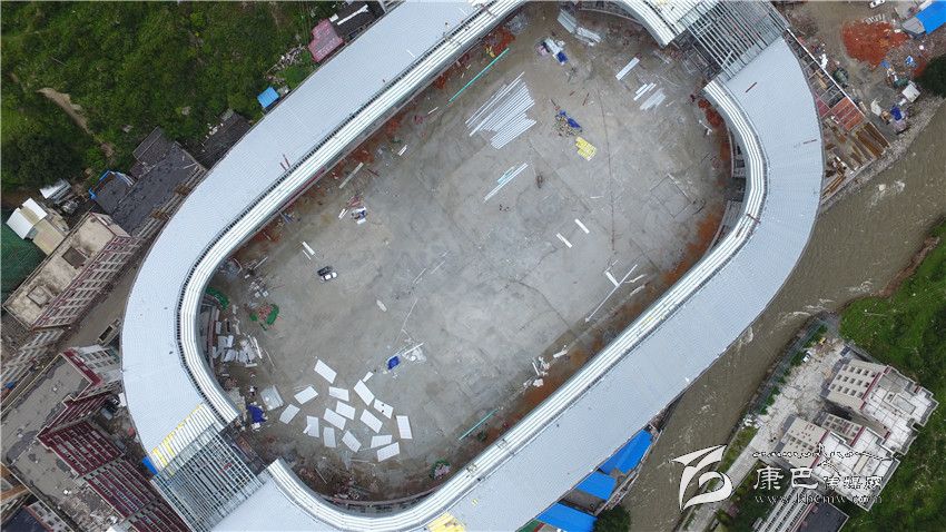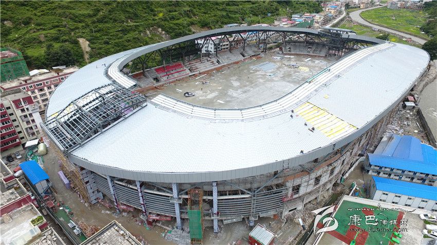 本網訊(余秋林 記者 肖宵 文/圖)第九屆康巴藝術節主要場館——康定北門體育場全面升級改造已進入尾聲。圖為從空中鳥瞰康定北門體育場。