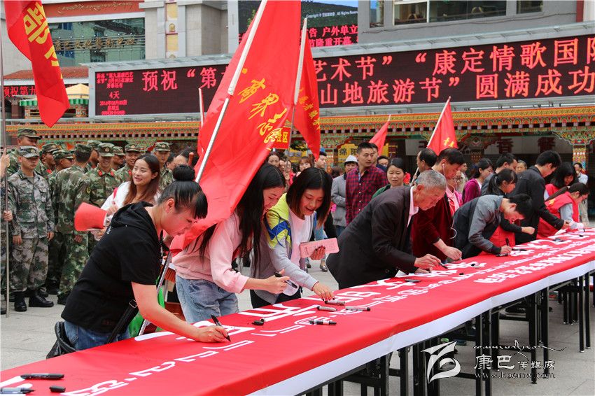 本網訊(記者 宋志勇 文/圖)8月5日,由州文明辦、州直工委、康定市文明辦共同舉行的康定地區迎“康巴藝術節”爭當文明市民簽名暨志愿服務活動在情歌廣場正式拉開帷幕。來自康定地區社會各界的青年志愿者服務隊、巾幗志愿者服務隊、工商界志愿者服務隊、衛生系統志愿者、駐康部隊志愿者服務隊、州級機關志愿者服務隊、市直機關志愿服務隊、環衛志愿者服務隊等共計1000余人參與。