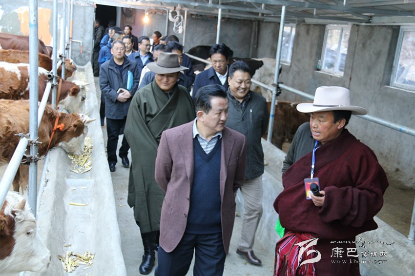 與會人員在雅江縣八角樓鄉王呷一村奶牛場考察。