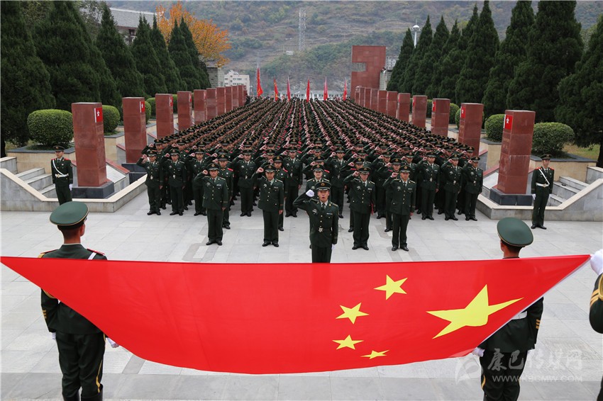 本網訊(宋科霖 文/圖)近日,武警四川總隊甘孜州支隊的千名新戰士在紅軍飛奪瀘定橋紀念碑前舉行入伍宣誓暨授銜儀式。圖為新戰士舉起右手莊嚴承諾——繼承先烈遺志,爭做紅軍傳人。