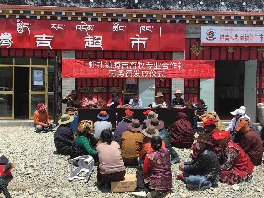“精準(zhǔn)扶貧”貴在“精準(zhǔn)”,精確找準(zhǔn)“貧困癥結(jié)”,準(zhǔn)確“對(duì)癥下藥”;由于塔須村惡劣的自然環(huán)境制約,村民們還過著古老傳統(tǒng)的游牧生活,導(dǎo)致塔須村社會(huì)、經(jīng)濟(jì)、文化發(fā)展相對(duì)滯后,全村無(wú)集體經(jīng)濟(jì)產(chǎn)業(yè),屬于我州貧困村中的“貧中之貧”,以往傳統(tǒng)的扶貧措施猶如“灑胡椒面”,治標(biāo)不治本;“授人以魚,不如授人以漁”,為讓塔須村能建立村集體產(chǎn)業(yè),村民們能掌握一門致富手藝,州水務(wù)局結(jié)合塔須村實(shí)際,多次派遣工作組深入塔須村,了解貧困戶生活現(xiàn)狀、致富愿望,聽取村兩委干部建言,形成專題脫貧報(bào)告;鑒于牧民致富愿望強(qiáng)烈,村干部建言獻(xiàn)策,在州水務(wù)局的積極協(xié)調(diào)下,在蝦扎鎮(zhèn)黨委、政府的倡導(dǎo)下,經(jīng)石渠縣人大牽頭,通過州級(jí)各聯(lián)系單位、駐村幫扶工作組和村兩委的努力,整合各方人力、物力、財(cái)力,團(tuán)結(jié)協(xié)作,于2016年3月成立了“石渠縣蝦扎騰吉畜牧專業(yè)合作社”,并選舉出9名致富能手為騰吉專業(yè)合作社理事人選。“騰吉合作”乃飛騰吉祥之意,寓意著牧民群眾齊心協(xié)力,共奔小康。