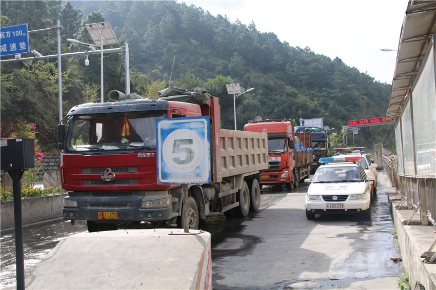 去年10月21日,全國將執行新的貨運車裝載標準,將降低貨車運載量。20日,瀘定檢測站迎來了大貨車運輸高峰,當天通過瀘定檢測站的進州貨車就高達953輛,陡然增加的車流量,讓瀘定檢測站執法人員忙得不可開交。凌晨1點左右,因距離檢測站數公里外道路正在施工,造成交通大面積擁堵。盡管不在工作職責范圍內,瀘定檢測站除值班人員留守外,交通路政、運管、公安交警、特警全員上陣疏導交通?;謴屯ㄐ袝r,已經是凌晨3點過。對于這樣的“家常便飯”,執法人員已經司空見慣?!安荒茉跈z測站周邊造成交通擁堵,這是我們的職責”。