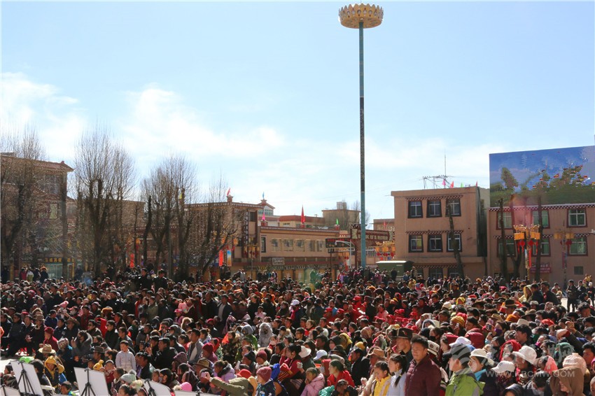 本網訊(葉強平 唐鵬飛)1月29日,農歷大年初二,理塘縣格薩爾廣場上彩旗飄揚、熱鬧非凡,一場帶有濃郁藏區特色的理塘縣2017年“幸福家園·祥和春節”聯歡文藝匯演,吸引了縣城及周邊鄉鎮3000余名農牧民群眾前來觀看。