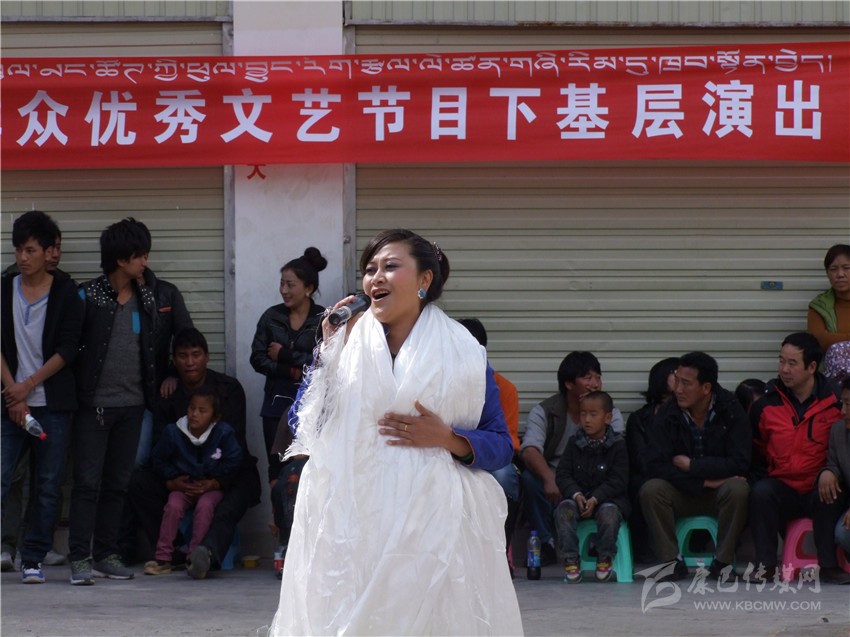 “2013年康巴兒女頌黨恩——甘孜州群眾優秀文藝節目赴基層演出”活動相繼在稻城、得榮、鄉城、瀘定展開。3月的稻城,氣候依然寒冷,特別是稻城亞丁機場,這里海拔高,氣候惡劣,天氣變化莫測,對于格桑志瑪來講,到海拔4410米的地方演唱,是一個很大的挑戰。盡管如此,她希望通過自己熱情的演唱,能給建設者送去一絲溫暖。