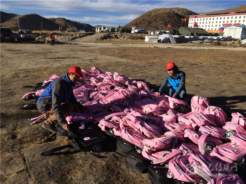 志愿者清理愛心物資。