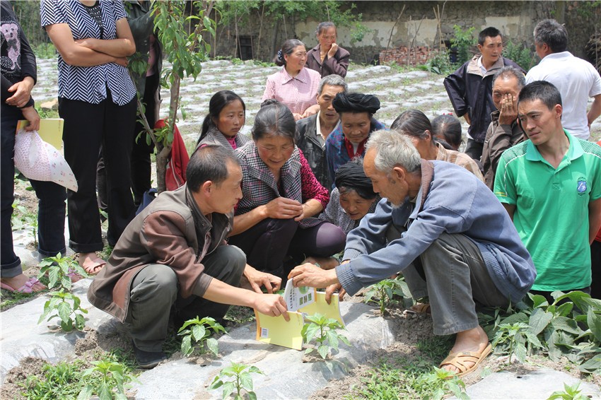 瀘定專家服務隊指導村民科學種植蔬菜。