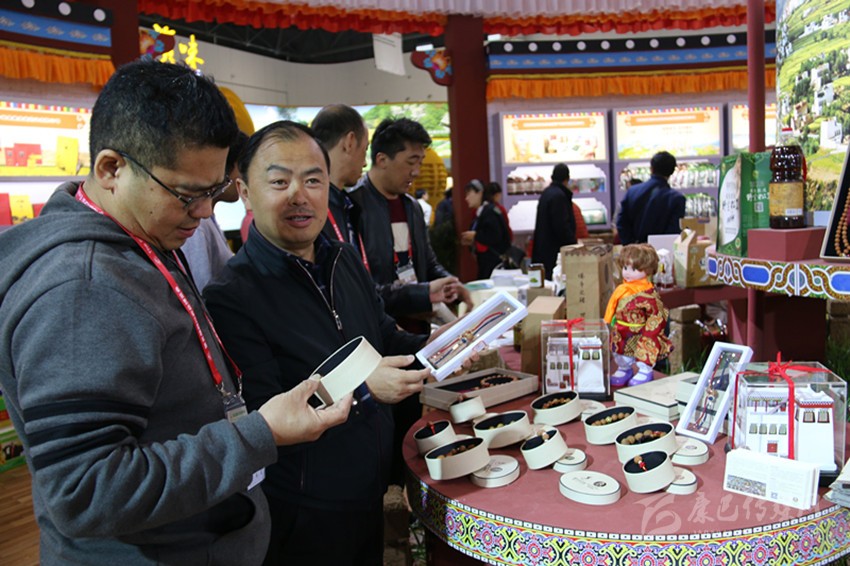 在兩天的參展中,我州展館野生的菌類、酒類,原生態的牦牛肉、青稞,綠色的大蔥、蘿卜……五顏六色,讓人垂涎。