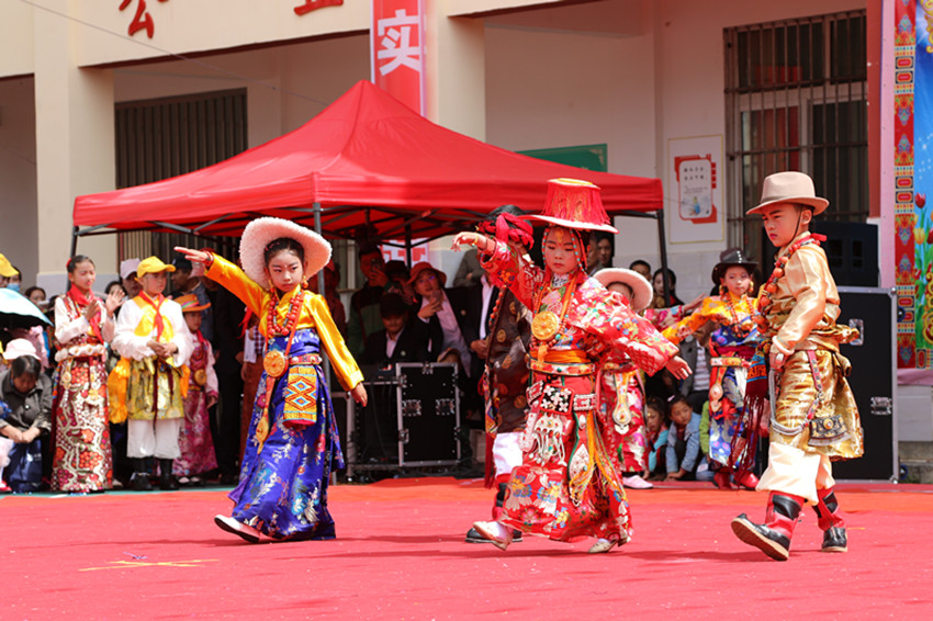 當(dāng)天,藝術(shù)展演在百人大合唱中拉開(kāi)帷幕。舞蹈《紅孩子》傳承紅色精神;校園劇《臉譜》展現(xiàn)了中華藝術(shù)瑰寶京劇的魅力;舞蹈《籃球?qū)氊悺反蚱苽鹘y(tǒng)體操舞蹈編排,將幼兒體操和花樣籃球相結(jié)合,動(dòng)感十足;《藏民族服飾表演》絢麗多彩極具魅力;音樂(lè)情景劇《老師媽媽、媽媽老師》催人淚下。《雪域歡歌》《趣味對(duì)唱》《吉祥筷子舞》等33個(gè)節(jié)目輪番上演,完美地呈現(xiàn)了甘孜縣各學(xué)校在教育發(fā)展過(guò)程中發(fā)生的巨大變化,充分展示了全縣中小學(xué)生朝氣蓬勃、積極向上的精神面貌,讓現(xiàn)場(chǎng)觀眾享受了一場(chǎng)與眾不同的視聽(tīng)盛宴。縣委中心報(bào)道組 余應(yīng)瓊 劉炳科 文/圖
