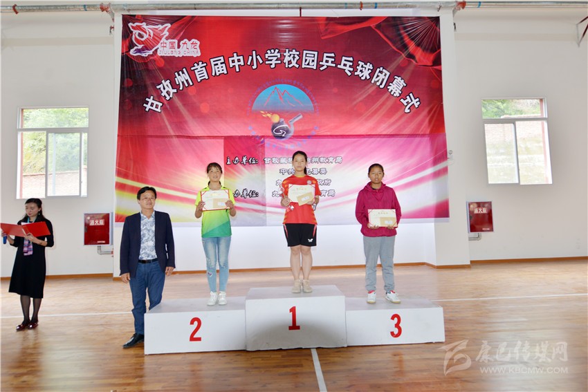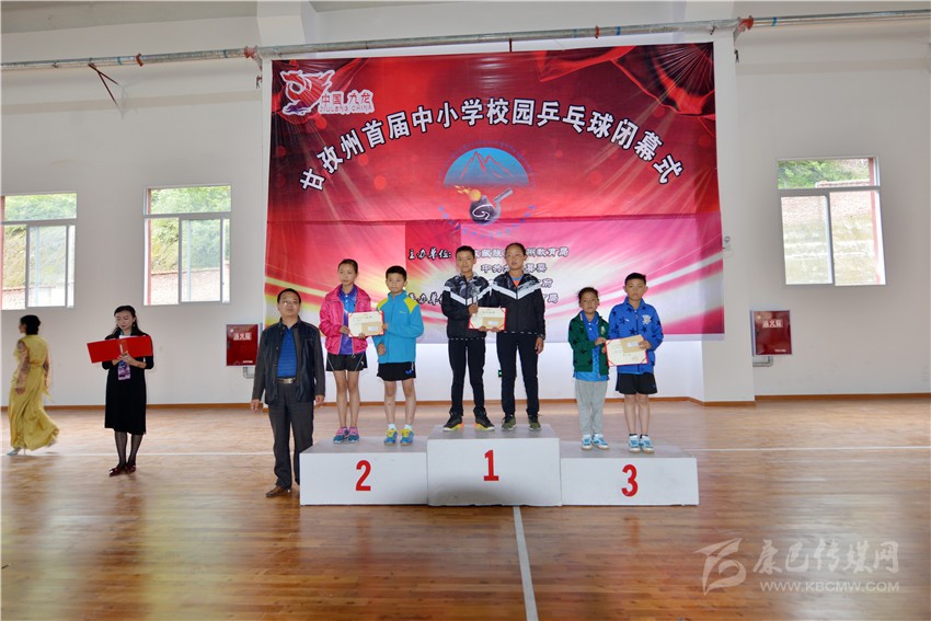 閉幕式上,乒乓球裁判長向全體運動員宣布:甘孜州首屆校園乒乓球賽圓滿結束,此次比賽成績真實有效,符合賽事組委會預先制定的競賽規則。周敏吉、邱志明、唐定成、翁義分別為獲得小學組、初中組、高中(中職)組獲得女單、男單、混合雙打前三名的運動員頒獎。