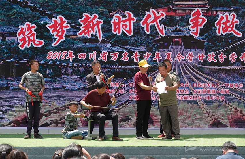 瀘定縣關工委的“五老”為孩子們演唱心中的歌。