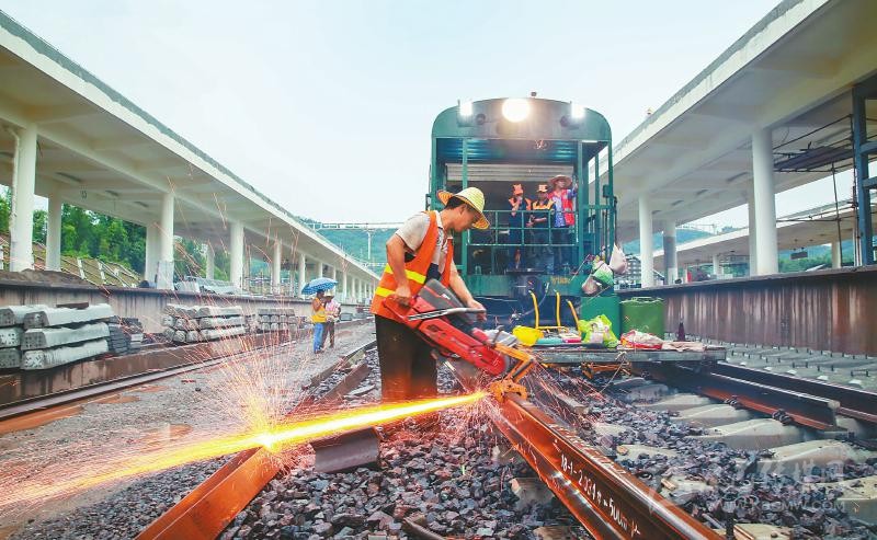 川藏鐵路成雅段長(zhǎng)鋼軌單線鋪通