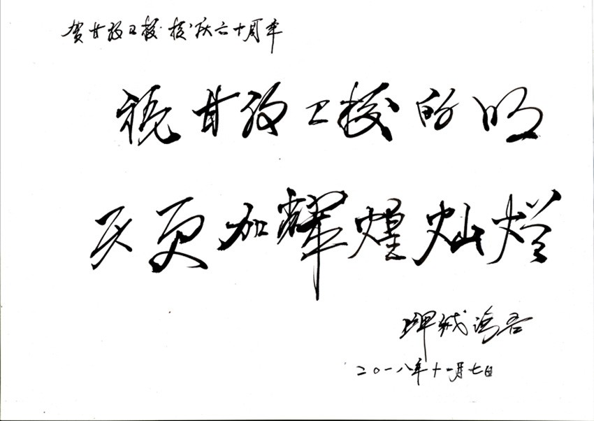 最后,祝愿母校60周年校慶取得圓滿成功!祝各位老師、校友和同學身體健康、工作順利、學習進步!祝愿母校在新的征途上披棘斬荊,再鑄輝煌!
