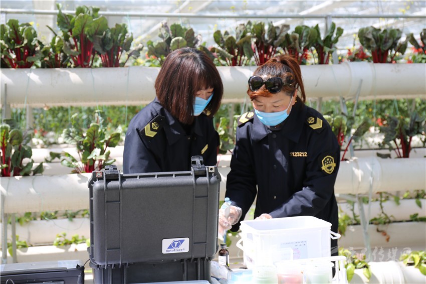 “無論是源頭把控還是后期培植,我們都是嚴格按照國家安全食品標準生產,灌溉用水、土壤的有機改良、育苗、田間管理、施肥、病蟲害防治……每一個環節保證做到專業、安全。特別是對病蟲害防治,我們使用的都是高于市場普通藥品5倍以上價格的生物制劑,保證所有蔬菜都是綠色無公害。”基地技術員段洪良拍起拍胸口。“質監局的工作人員就在我旁邊,我咋敢撒謊。”隨著他的指引,筆者看到一位穿著制服的工作人員正在大棚里進行茄子樣品檢測。
