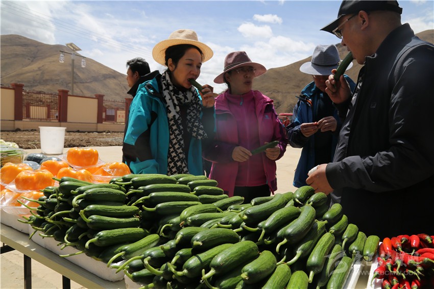 德格中扎科農業產業園有機蔬果引得參觀考察者競相品嘗。