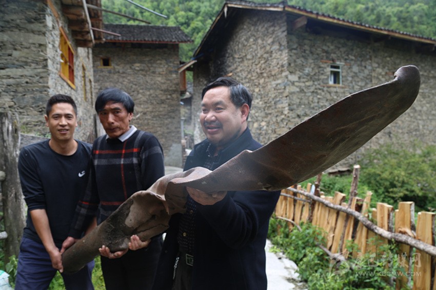 “好像謝明楊的兒子謝從富家有個‘風刀’(指螺旋槳葉片),你們去找哈。”思索片刻,楊高清突然記起村子里還有散落的飛機零件。