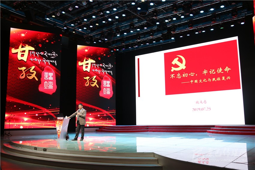 本網訊 7月25日上午,由州委主辦,州委宣傳部、州廣播電視臺承辦的“甘孜講壇”第二十一期專題講座在州電視臺文藝演播大廳開講,此次講座專程邀請了文化經典的研習者與傳播者,明倫書院執行院長、成都明倫書院院長、兼任成都市武候區社科聯副主席施文忠專家以《不忘初心、牢記使命——中國文化與民族復興》為題,進行了以史為鑒、更好前進的解讀。州政協副主席陳洪暴、蔣秀英、阿基布珠等領導以及州級機關部門負責人聆聽了講座。