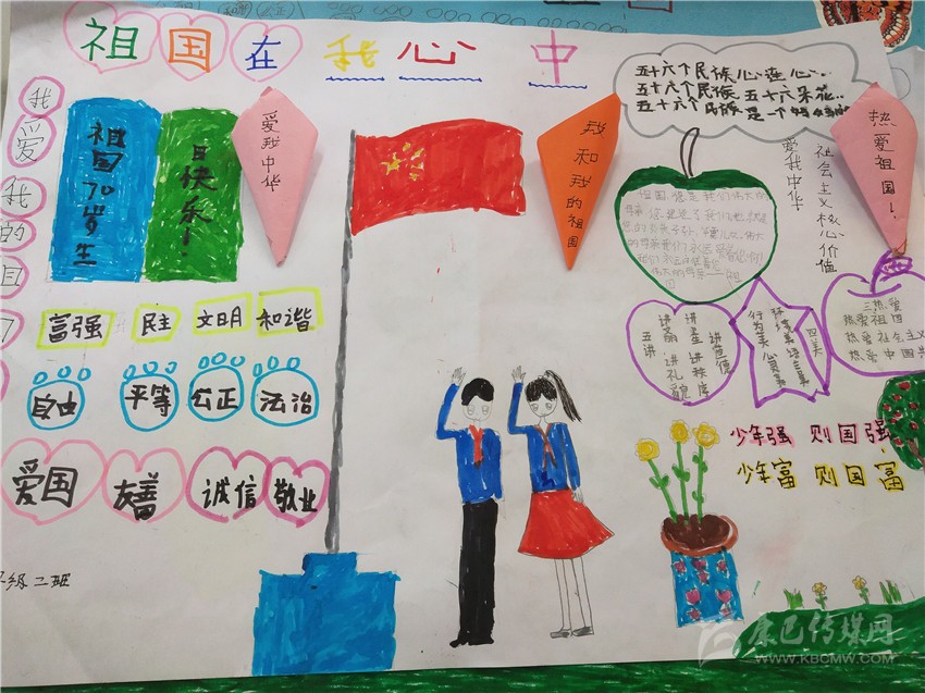 活動在該校三至六年級學生中開展,老師為學生提供創作所需材料,讓學生自由想象發揮,把自己心中對祖國的熱愛躍然紙上。各班精心組織,不到兩個小時的時間,一幅幅主題鮮明、內容豐富、色彩明快的手抄報誕生了,孩子們的作品充滿了對祖國深深的愛與衷心的祝福。何俊鑫 文/圖