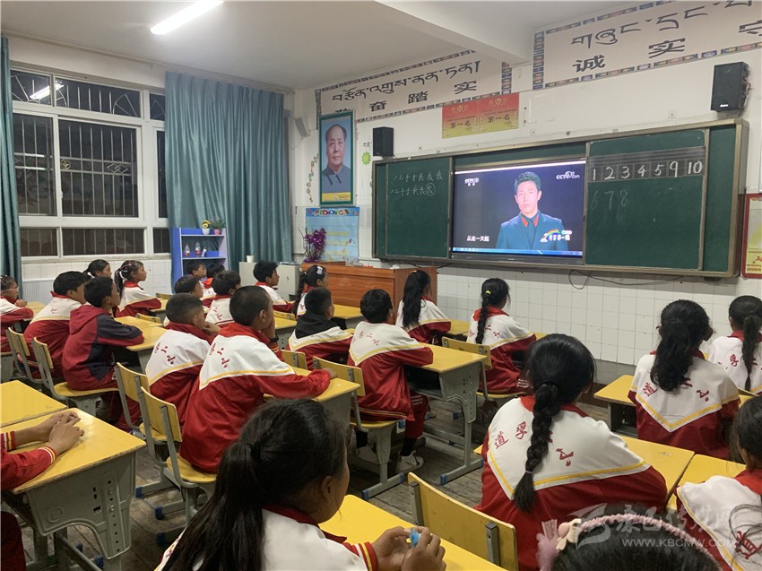 道孚縣城關二完小學生集中收看《開學第一課》。
