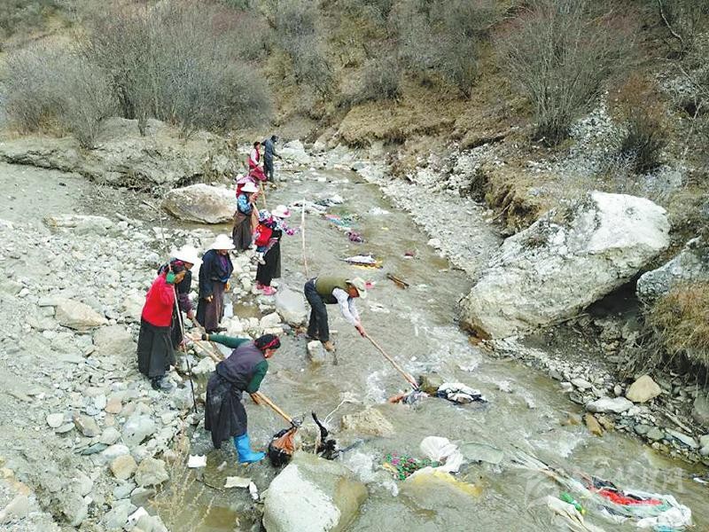 說干就干,黃先明帶領(lǐng)駐村工作隊(duì)隊(duì)員和村兩委班子成員不畏嚴(yán)寒,首先把全村的道路、公共設(shè)施場地進(jìn)行了清掃,把道路兩邊的小土堆全部鏟平并種上花草,把村民房前屋后的柴火、廢料等重新清理并制定擺放標(biāo)準(zhǔn)。在河道整治中,黃先明帶領(lǐng)村干部沖在前面,對(duì)不容易清理到的垃圾,還跳到河里去撿。3月的高原還很冷,鞋子很快被交納河水打濕,但大家全然不顧。“黃隊(duì)長都帶頭干,我們更要努力。”交納村村民巴登鄧珠說。