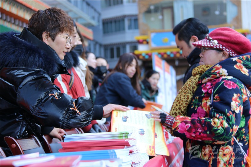 活動現場,工作人員為市民發放民族團結進步宣傳品、民族團結進步藏漢雙語宣傳教育讀本、宣傳畫、宣傳折頁、宣傳掛歷、《中國民族報》甘孜州民族團結專刊、《民族》雜志甘孜州民族團結專刊等各類宣傳資料9800余份(本),擺放展板30個。來自丹巴縣的仁真說:”現在的幸福生活離不開偉大的中國共產黨的領導,也離不開全國各族人民共同團結奮斗、共同繁榮發展。”