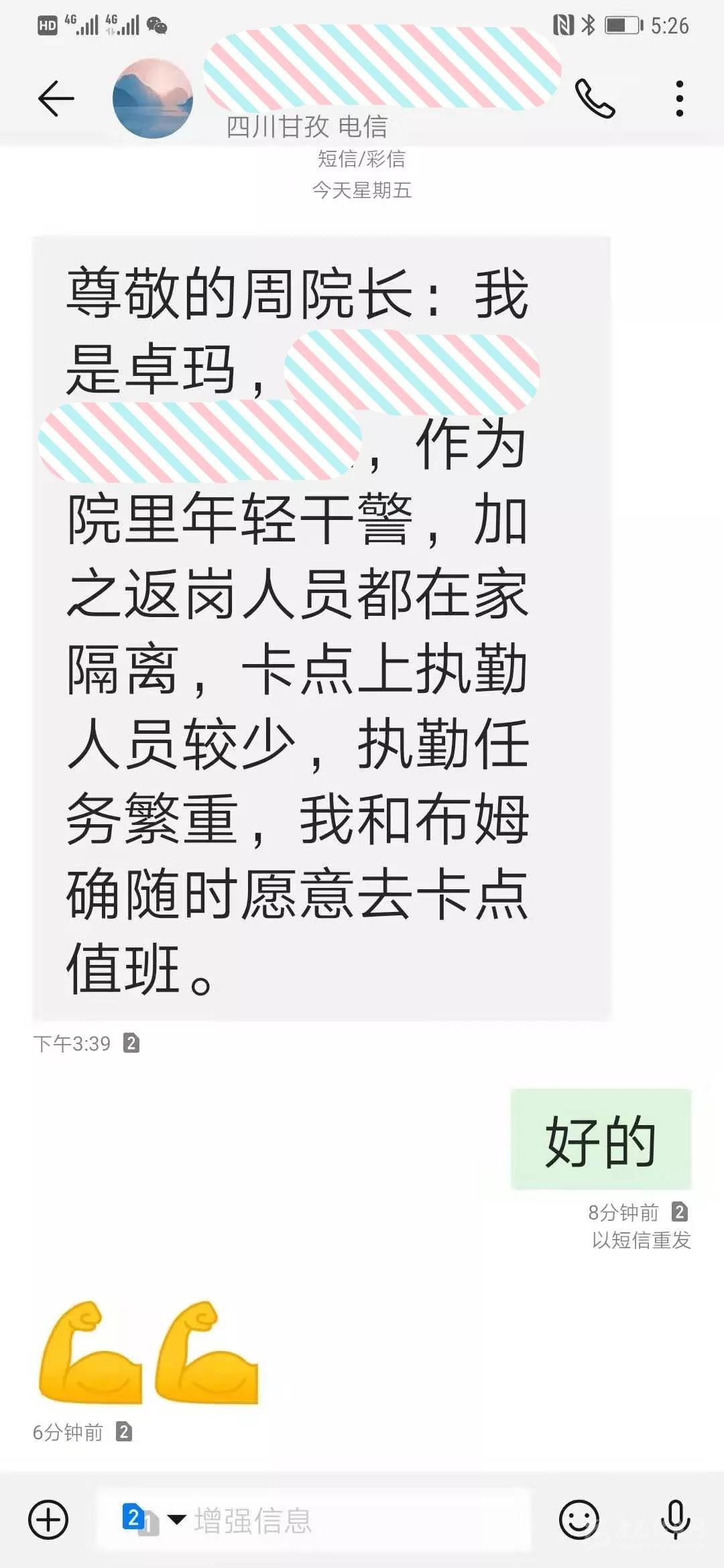 遞交請戰書時,登珠正在根據單位安排輪休,單位組建的疫情防控卡點值班干警名單里也沒有他的名字,他完全可以安居家中靜等疫情過去,況且妻子作為一名醫務人員一直堅守在防疫一線,家中兩個孩子,大的3歲,小的才9個月,父母也是年邁體弱,家里同樣離不開他。當下疫情肆虐,“讓群眾身體健康、安心放心,這就是我最大的心愿!”他深知他的身后是道孚縣的幾萬人民群眾,好男兒自當奮勇報國,盡管內心滿負愧疚,但他不曾有一秒退卻的念頭。