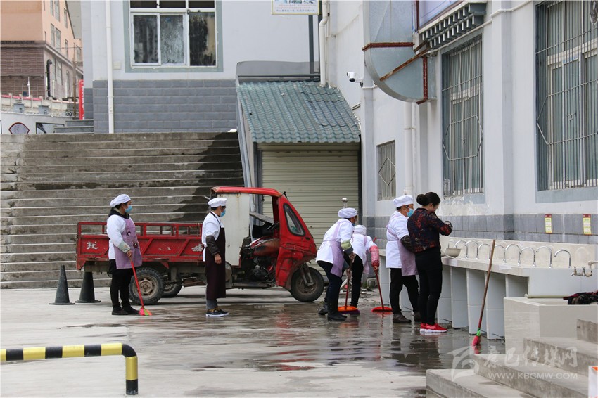記者了解到,康定市民族中學實行半封閉式管理,走讀學生早上到校后,直到晚上放學才能出校門,午餐和晚餐都在學校就餐,學校食堂外也安裝了紅外線測溫儀。中午12點,原本是放學吃飯時間,該校初三學生沒有像往常一樣集中趕往食堂吃飯,而是由老師帶隊分批次、有組織的分散就餐,杜絕打堆吃飯,減少不必要的聚集。餐后,食堂工作人員又將食堂地板反復清掃,之后統一進行消毒。