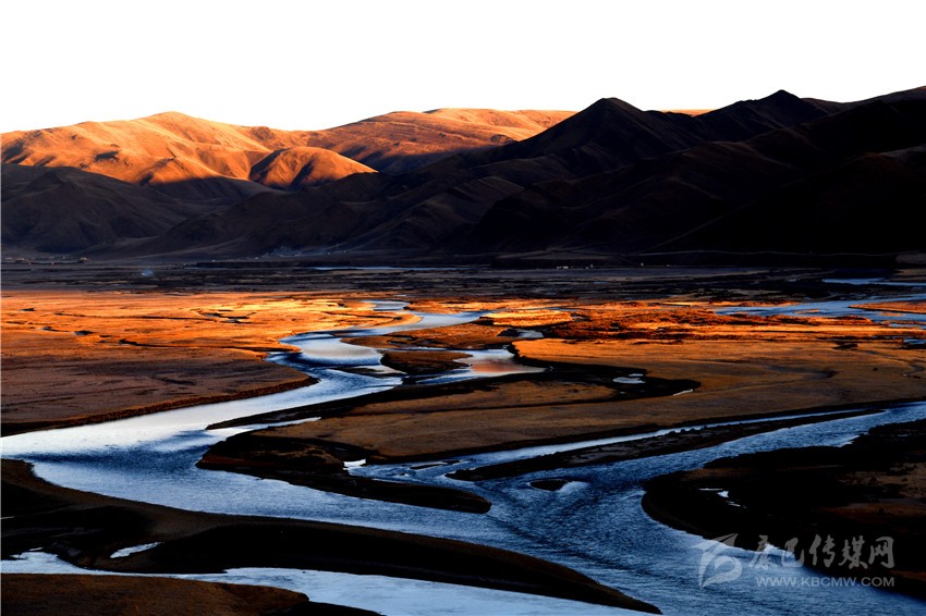 扎溪卡大草原朝霞映襯下的雅礱江源頭。