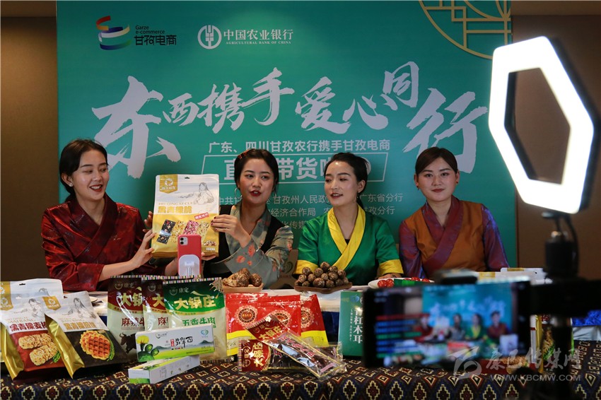 本網訊 8月9日晚7點,農行廣東省分行、四川甘孜分行聯合開展“東西攜手 愛心同行”粵川兩省農行直播帶貨活動。