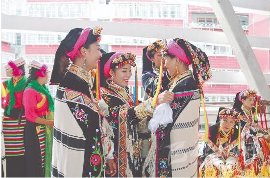在候場區(qū),暫時(shí)還未上場的演員們或聚在一起捧著手機(jī)看現(xiàn)場直播,或相互整理妝發(fā),或在角落一次次重溫舞蹈動(dòng)作、調(diào)整表情,力求把最完美的姿態(tài)展示在舞臺上,還有的則是呼朋引伴合影留念。“這是個(gè)值得紀(jì)念的日子。”得榮縣陳智文說,正因如此,大伙兒才分外珍惜,希望用照片記錄下這次難得的經(jīng)歷。
