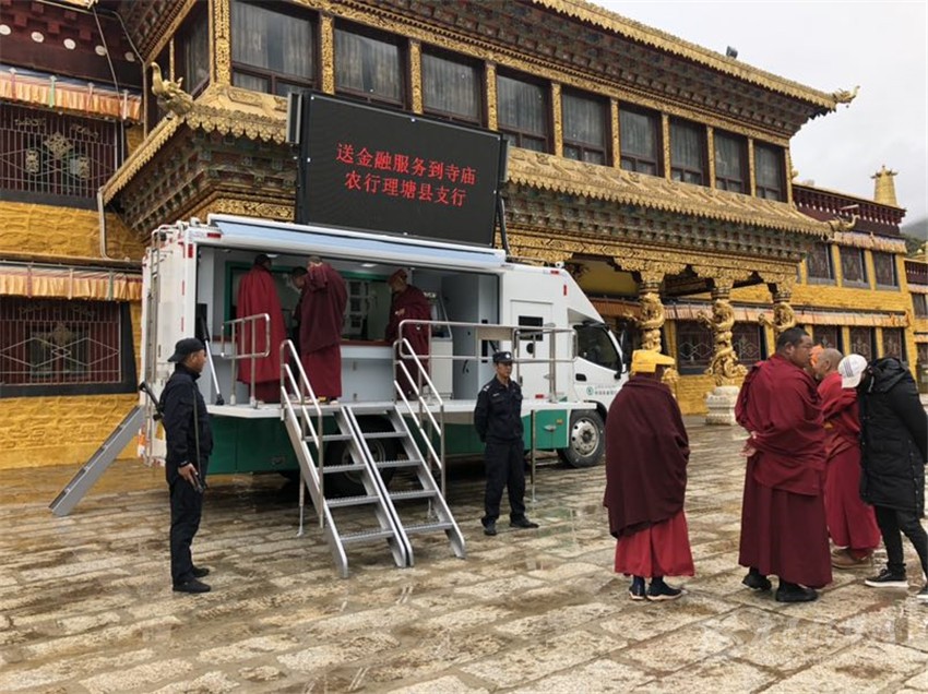 深入寺廟,服務僧侶“顯真情”。5月23日,理塘縣支行又將流動汽車銀行開往距縣城近100公里的下壩片區,該片區下轄4個鄉鎮、16個行政村、1座寺廟,先后深入鄉鎮、寺廟開展流動金融服務,累計辦理存取款業務12筆、金額25500元,殘損幣兌換200元,辦理開卡3戶、手機銀行2戶、手機短信5筆、密碼解鎖2筆、查詢3筆、明細打印2筆、手機安全認證碼修改3筆。