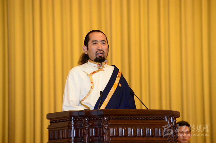 圖為其美多吉在人民大會堂作報告。