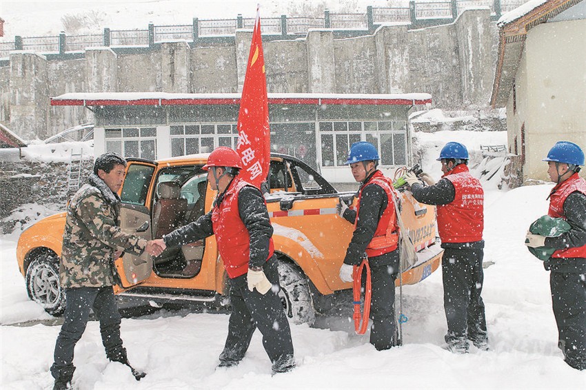 黨員服務隊在康定2·21雪災期間冒雪前往搶修。