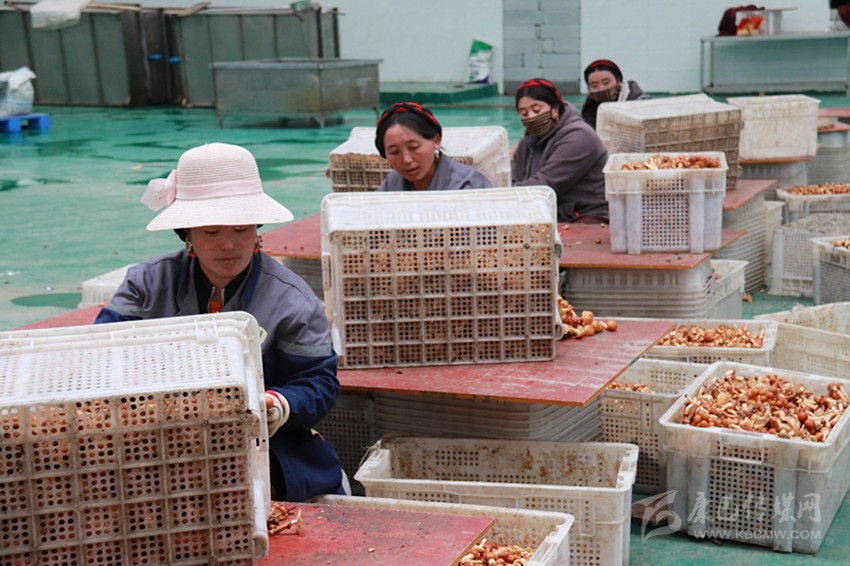 雅江縣就業扶貧基地工人正在分揀松茸。