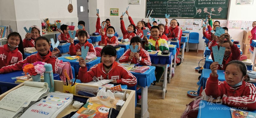 康定市民族小學的孩子們展示收到的“綠書簽”。