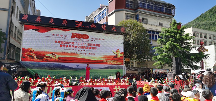 本網訊 用聲音追憶崢嶸歲月,用詩詞迎接世界讀書日。4月23日上午,在康定市民族小學舉辦的2021年甘孜州全民閱讀活動暨康定市全民閱讀活動啟動儀式上,康定市7所學校緊扣慶祝中國共產黨成立100周年主線,以弘揚中華民族傳統文化、紅色文化為主題,為大家奉上一桌各具特色的文化盛宴。