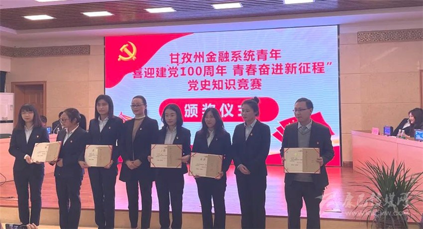 本網(wǎng)訊(陳建軍 江承艷)4月27日,農(nóng)行甘孜分行黨史學(xué)習(xí)青年代表競(jìng)賽小組在2021年甘孜州金融系統(tǒng)青年“喜迎建黨100周年 青春奮進(jìn)新征程”黨史知識(shí)競(jìng)賽中一舉斬獲三等獎(jiǎng)。該知識(shí)競(jìng)賽由人民銀行甘孜州中心支行舉辦,甘孜州金融機(jī)構(gòu)15支代表隊(duì)參加競(jìng)賽,農(nóng)行甘孜分行黨委副書記、專家、副行長(zhǎng)周莉萍及其他金融機(jī)構(gòu)負(fù)責(zé)人出席現(xiàn)場(chǎng)并為所有選手加油鼓勁。競(jìng)賽分為初賽和決賽兩個(gè)部分,初賽采用閉卷考試,決賽為現(xiàn)場(chǎng)搶答、必答等,甘孜分行青年代表隊(duì)以98分初賽筆試成績(jī)殺入決賽。在決賽環(huán)節(jié)中,農(nóng)行青年員工代表積極搶答,沉著應(yīng)戰(zhàn),流利回答,獲得裁判好評(píng)以及現(xiàn)場(chǎng)觀眾雷鳴般的掌聲。經(jīng)過激烈角逐,農(nóng)行代表隊(duì)取得個(gè)人第四名和團(tuán)體三等獎(jiǎng)的優(yōu)異成績(jī)。活動(dòng)最后,全體參賽、觀賽人員齊唱《唱支山歌給黨聽》,表達(dá)了對(duì)共產(chǎn)黨建黨100周年的深切祝福。
