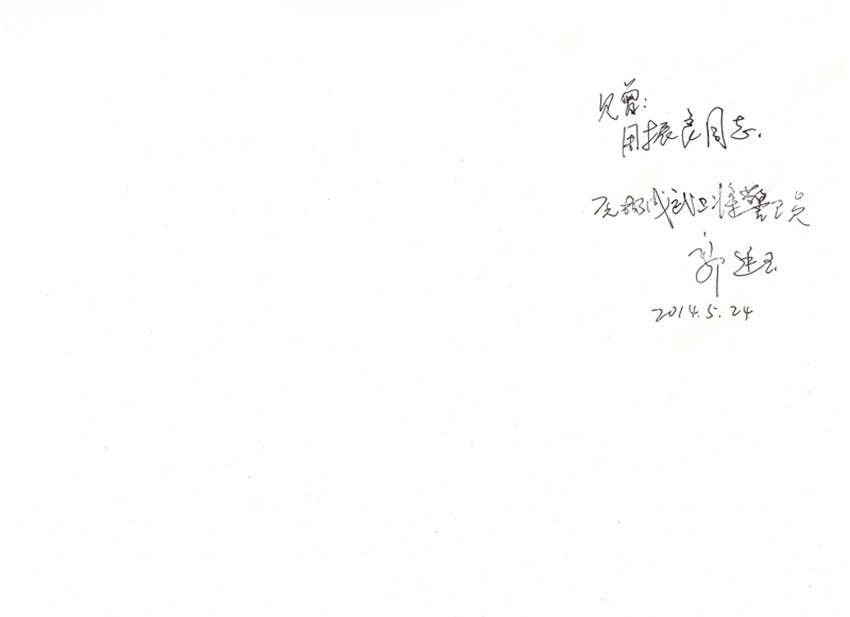 楊成武上將的警衛員送給周振良照片背后的留言。