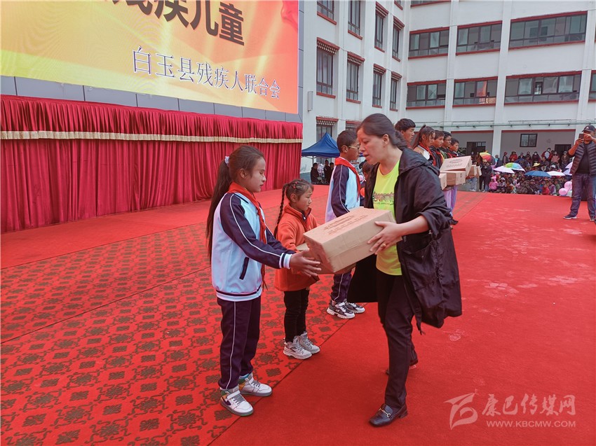 在“六一”兒童節之際,白玉縣殘聯前往城區各學校,與殘疾兒童親切交談,詳細了解孩子們學習、生活、家庭等方面的情況,鼓勵孩子們保持樂觀向上的心態,積極面對生活,并為他們送去了價值6000余元的文具禮包、書包等節日禮物。圖為工作人員把禮物送到孩子們手上。 梁露 鄧珠吉村 攝影報道
