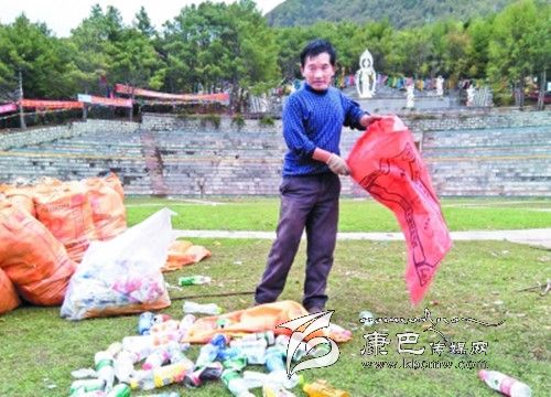5月6日是康定縣一年一度“四月八”跑馬山國際轉山會,上萬人在跑馬山上祈福游玩。5月7日在一家爆料網站上一位網友發布了一篇名為《甘孜康定跑馬山萬人轉山會后垃圾遍野》的微博。微博原文中說:“2014年05月06日,四川省甘孜藏族自治州,滿負荷的垃圾桶。跑馬山景區垃圾遍野。當天是農歷四月八轉山會,景區免門票,至少有上萬游客涌入景區,參加轉山會活動。”針對該網友爆料的情況記者走訪了康定跑馬山景區。在景區現場記者的確見到大量的垃圾“橫尸遍野”。藍天白云、青青草地真可謂詩情畫意,可是眼前的美景卻被無數的垃圾破壞。不知何時起旅游、垃圾仿佛成了連體嬰兒,甩也甩不掉,什么時候長假、旅游與垃圾才能隔離開來呢?帶著疑問記者采訪了景區相關負責人。