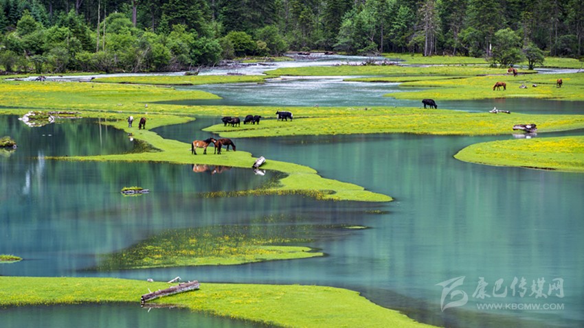 在甘孜州黃河流域第一鄉——長沙貢馬鄉,查曲河支流哥得爾給曲流域綠草如茵、野花盛開。