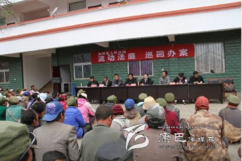 香格里拉人民法庭坐落于距“稻城亞丁國家級風景區”僅30公里的稻城縣香格里拉鎮。該法庭轄區為貢嶺、東義兩個片區以及香格里拉鎮的14個行政村、1個社區。轄區面積達4000余平方公里。轄區內以山區為主,道路崎嶇、交通不便,海撥、地域跨度大,最大的落差近3000米,距轄區內最遠的鄉鎮100公里。